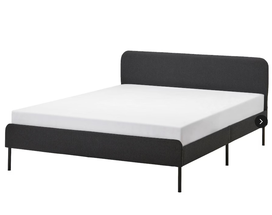 Sötétszürke minimál kárpitozott ágykeret.