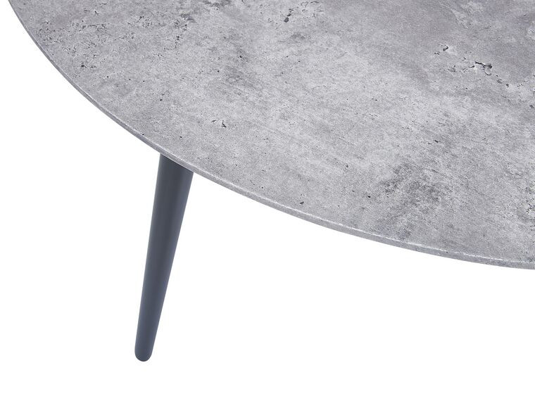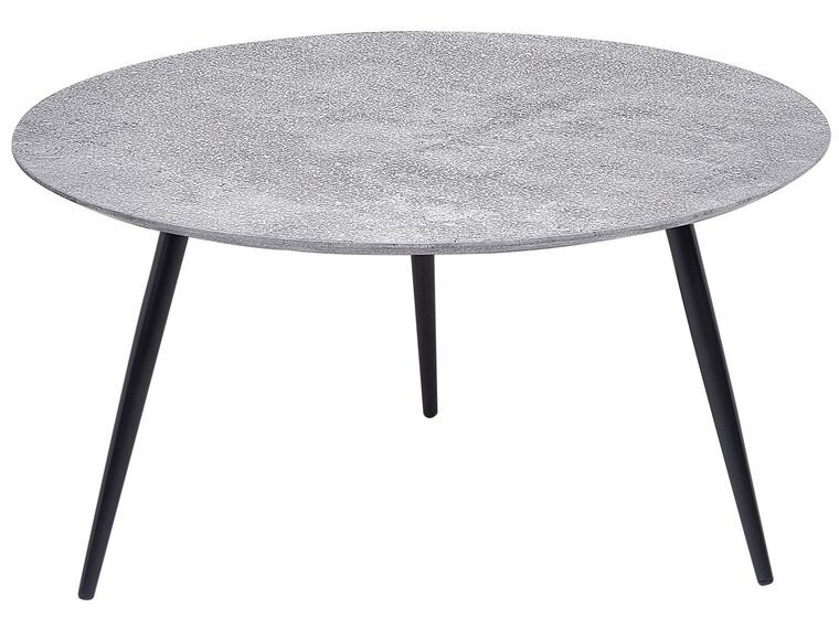 Modern kerek beton hatású szürke dohányzóasztal fekete lábakkal.