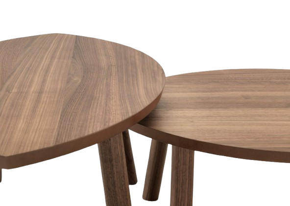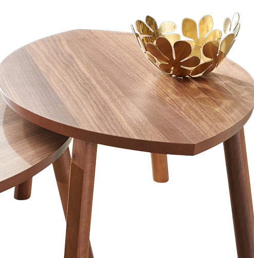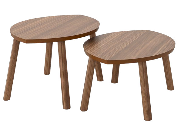 Dió furnér egymásba rakható dohányzóasztal szett Hosszúság: 72 cm, Szélesség: 47 cm Maximális magasság: 36 cm
